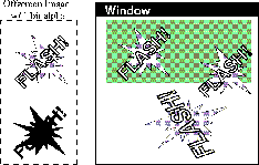 Figure 5-3 demonstrates how a program can draw to an offscreen image and then copy that image into a window multiple times. The last time the image is copied, it is transformed. Note that transforming the image instead of redrawing it with the transformation might produce unsatisfactory results.