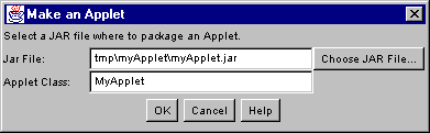 - Choose File|Make Applet to bring up the MakeApplet dialog: