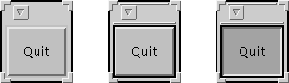 the button is pushed. Below are three views of a "Quit" button in Solaris: