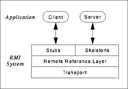 The RMI system consists of three layers: the stub/skeleton layer, the remote