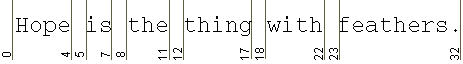 A BreakIterator has an imaginary cursor that points to the current boundary in a string of text. You can move this cursor within the text with the previous and the next methods. For example, if you've created a BreakIterator with getWordInstance, the cursor moves to the next word boundary in the text every time you invoke the next method. The cursor-movement methods return an integer indicating the position of the boundary. This position is the index of the character in the text string that would follow the boundary. Like string indexes, the boundaries are zero-based. The first boundary is at 0, and the last boundary is the length of the string. The following figure shows the word boundaries detected by the next and previous methods in a line of text: